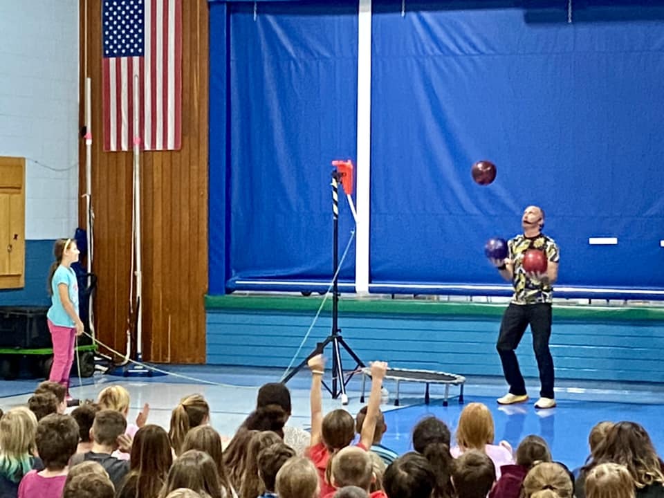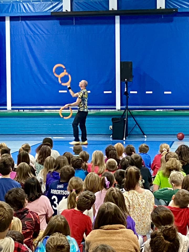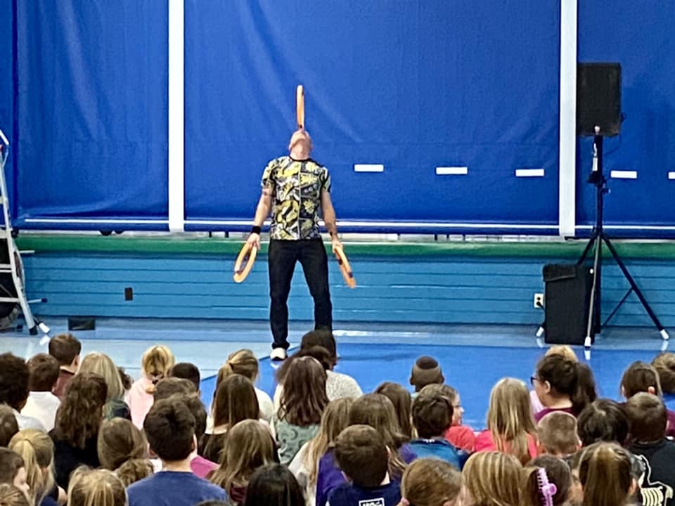 “A superb performance with a complete message! Students and faculty were highly engaged throughout your performance as classrooms erupted in laughter and cheers all over campus. Your enthusiasm is infectious and your high-energy juggling act, mesmerizing. Our students loved every minute of it. Bravo!”