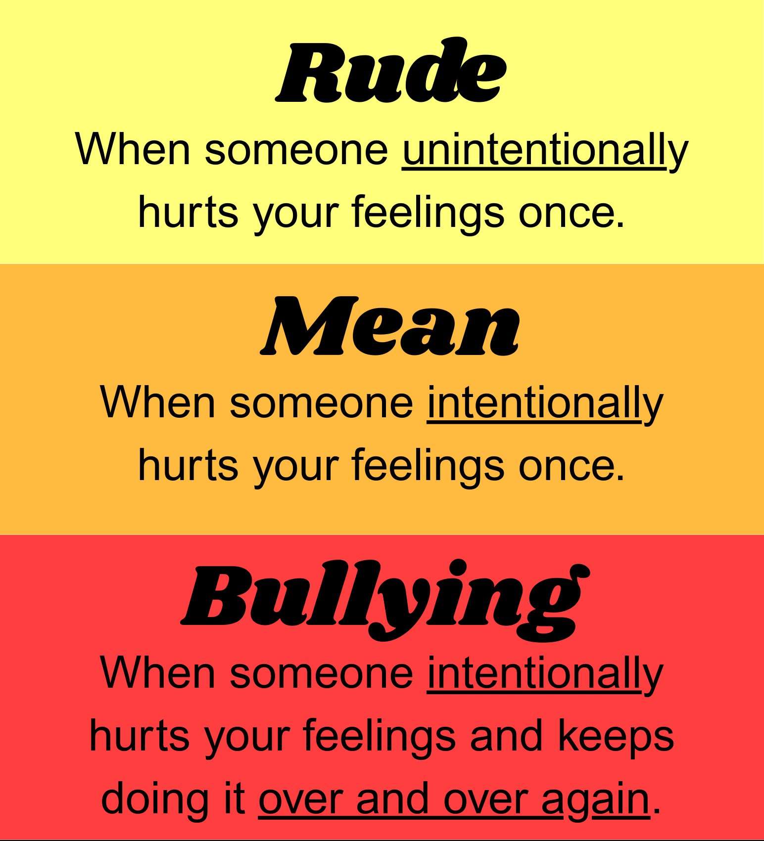 - The difference between being Rude, Mean, and Bullying