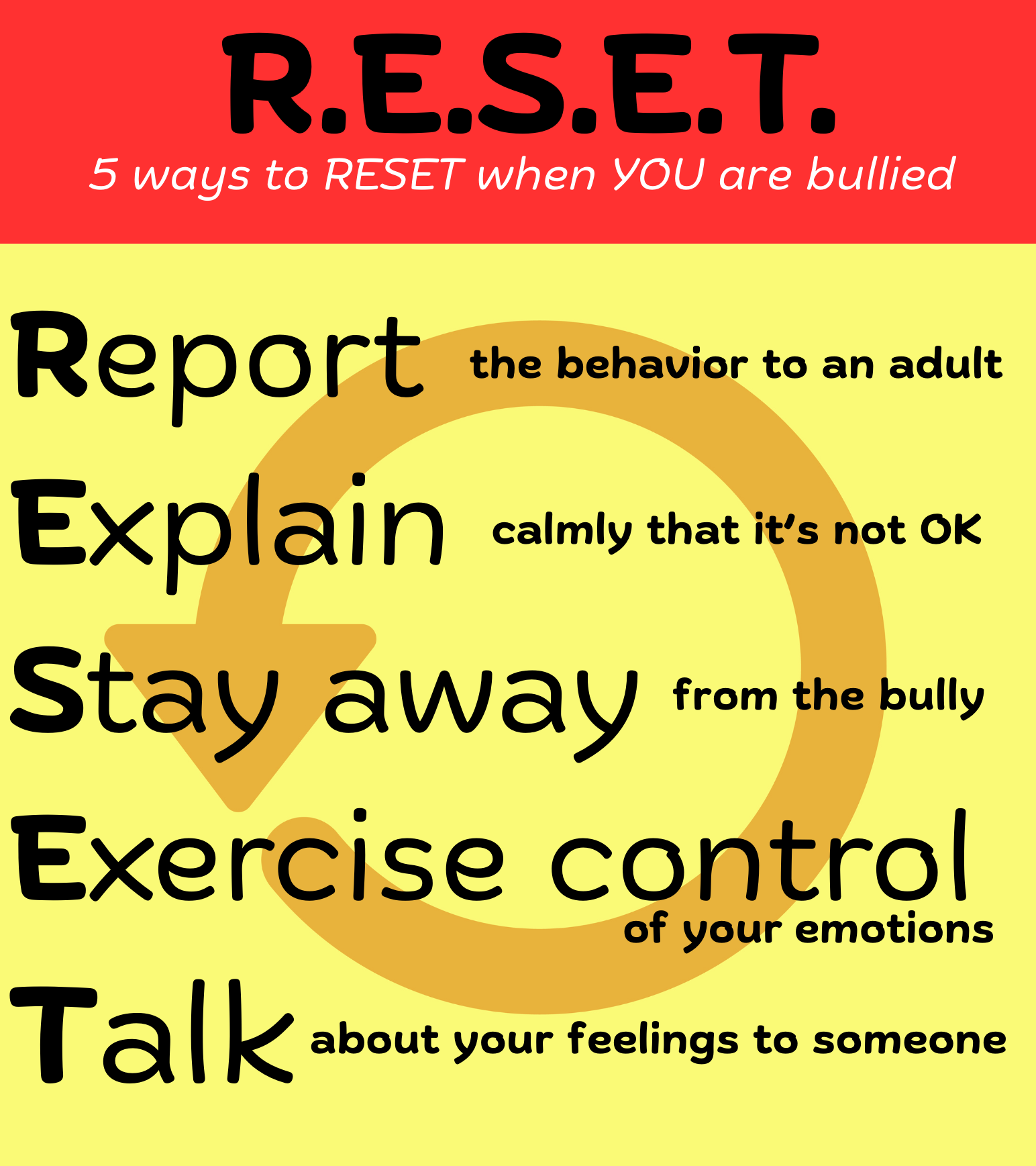- How to R.E.S.E.T. if you are being bullied